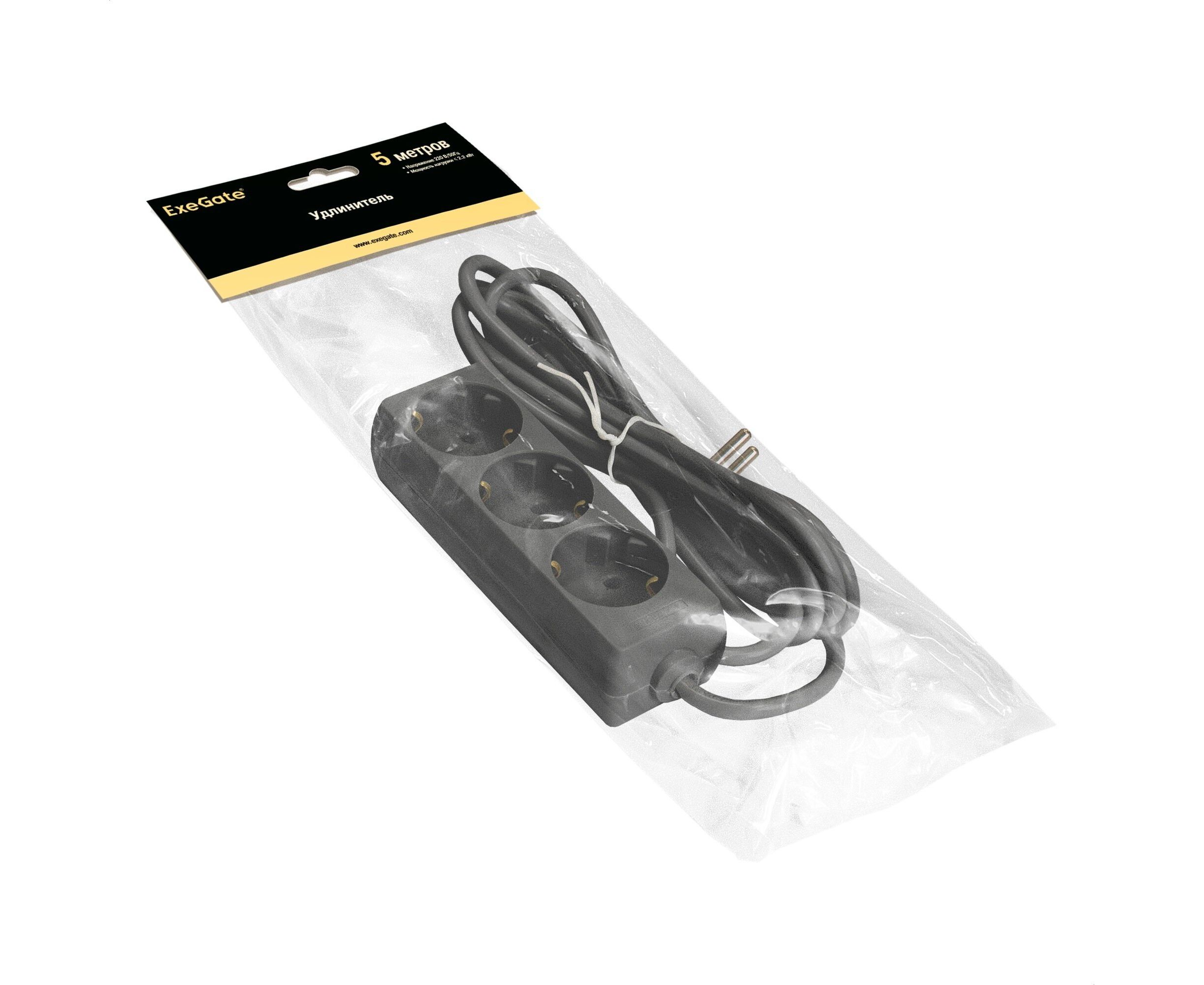 Удлинитель ExeGate ECE-3-5B (EX285807RUS) 3 евророзетки, 5м, черный