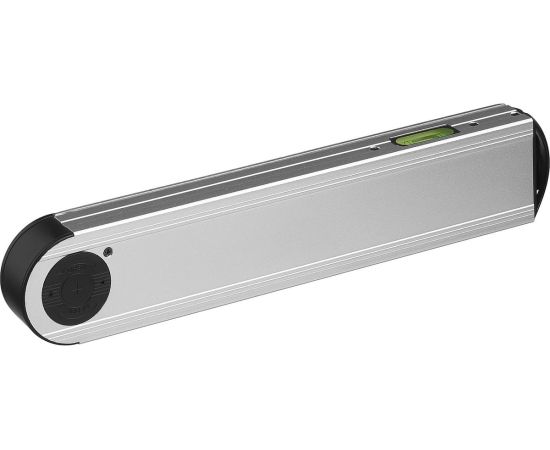 Угломер электронный KRAFTOOL 34684, предназначен для измерительных работ и контроля выставленных под углом конструкций. С его помощью можно задать нужный угол, а также осуществить его проверку. Полученные результаты отображаются на легко читаемом ЖК-дисплее. Цифровой угломер с пузырьковым уровнем пригодится в строительстве, дизайне и архитектуре. Функция проверки внешнего и внутреннего угла. Возможность поворота при измерении углов до 45°. Электронный модуль обеспечивает высокую точность и скорость проведения измерений. Технические характеристики KRAFTOOL DAM-27 34684 Поверка нет Длина уровня 0.25 м Элементы питания CR2032 Внесен в госреестр нет Оптимальный диапазон измерения 0-225 град Габариты без упаковки 270х37х50 мм Вид упаковки блистер Диапазон измерения угла 0-225 град Диапазон измерения уклона 0-225 град Точность (пузырьковый уровень) 0.5 град Точность (электронное измерение) 0.05 град Вес нетто 0.408 кг