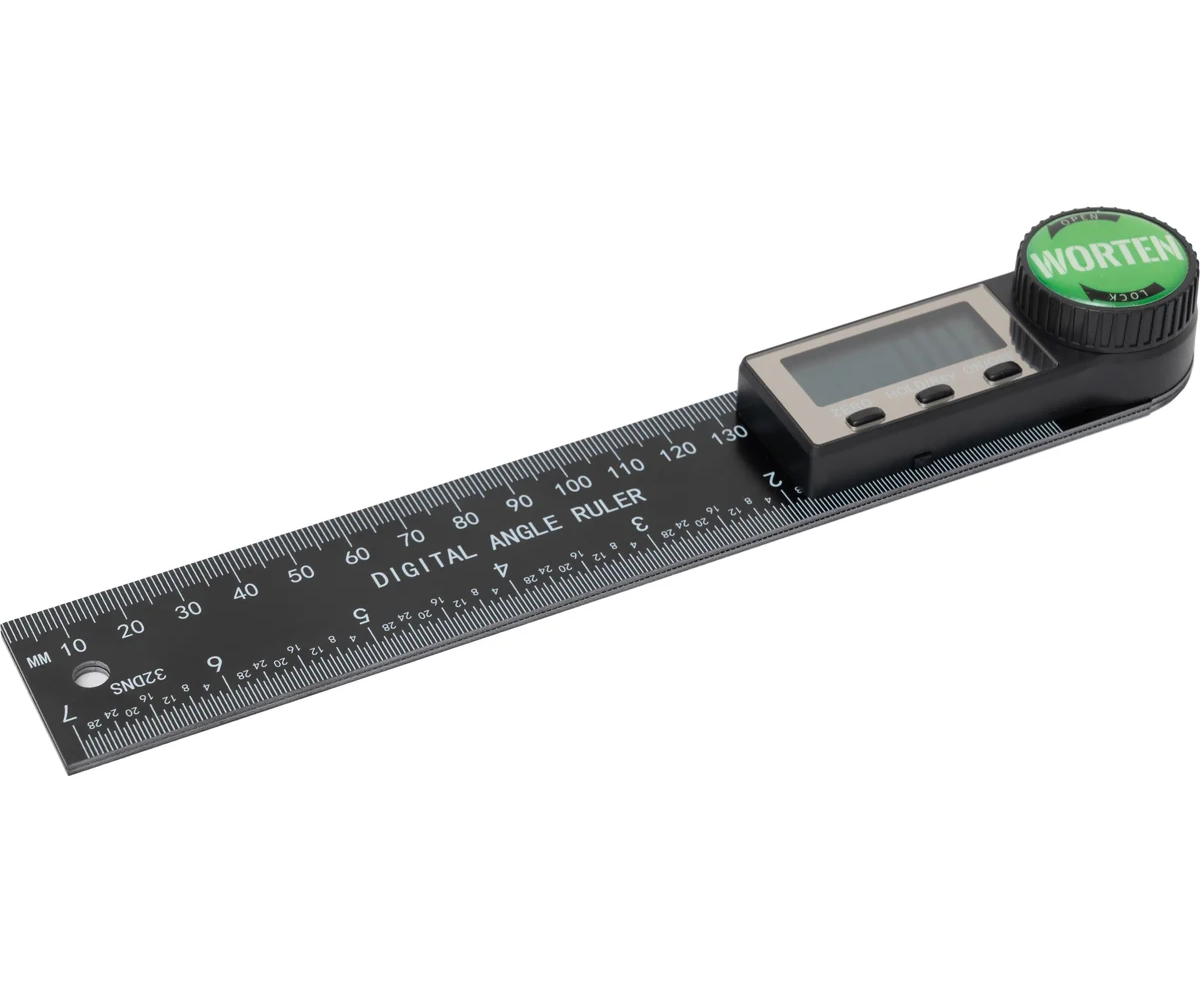 Угломер электронный батарея CR2032 IM КА-90000334 WORTEN с линейкой предназначен для измерения внутренних и наружных углов в любой плоскости. Подойдет, как профессиональным строителям, так и просто домашним мастерам в сфере деревообработки, строительства, черчения и других задач. Датчик угломера позволяет осуществлять измерение угла в диапазоне от 0 до 360 градусов. Конструкция угломера позволяет плотно прикладывать его к поверхности. Подходит для деревообработки, строительства, черчения и других областей. Угломер можно зафиксировать под любым углом, повернув ручку фиксации. А нажатие кнопки HOLD удерживает показания. Батарейка CR2032 (входит в комплект), обеспечивает длительное время автономной работы. Угломер прекрасно подойдет для строителей, дизайнеров, мебельщиков и всех, кто ценит точность и надежность. Поворотный механизм позволяет применять прибор для замера различных углов и поверхностей. Прибор оснащен ЖК дисплеем. Идеальный подарок для плотников, архитекторов, любителей DIY и т.д.