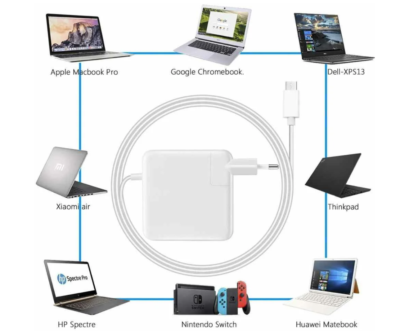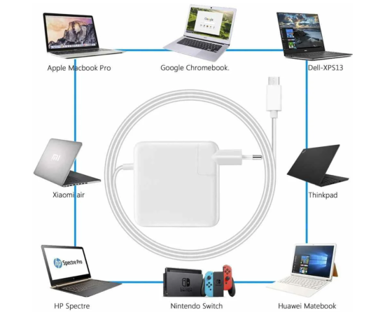 5A кабель USB C-C длиной 1.8м изготовлен из более толстого медного провода для поддержки максимальной мощности 5A / 100 Вт для зарядки ноутбуков на полной скорости 87 Вт. Шнур 1.8 метра позволяет работать и заряжать ноутбук где угодно.