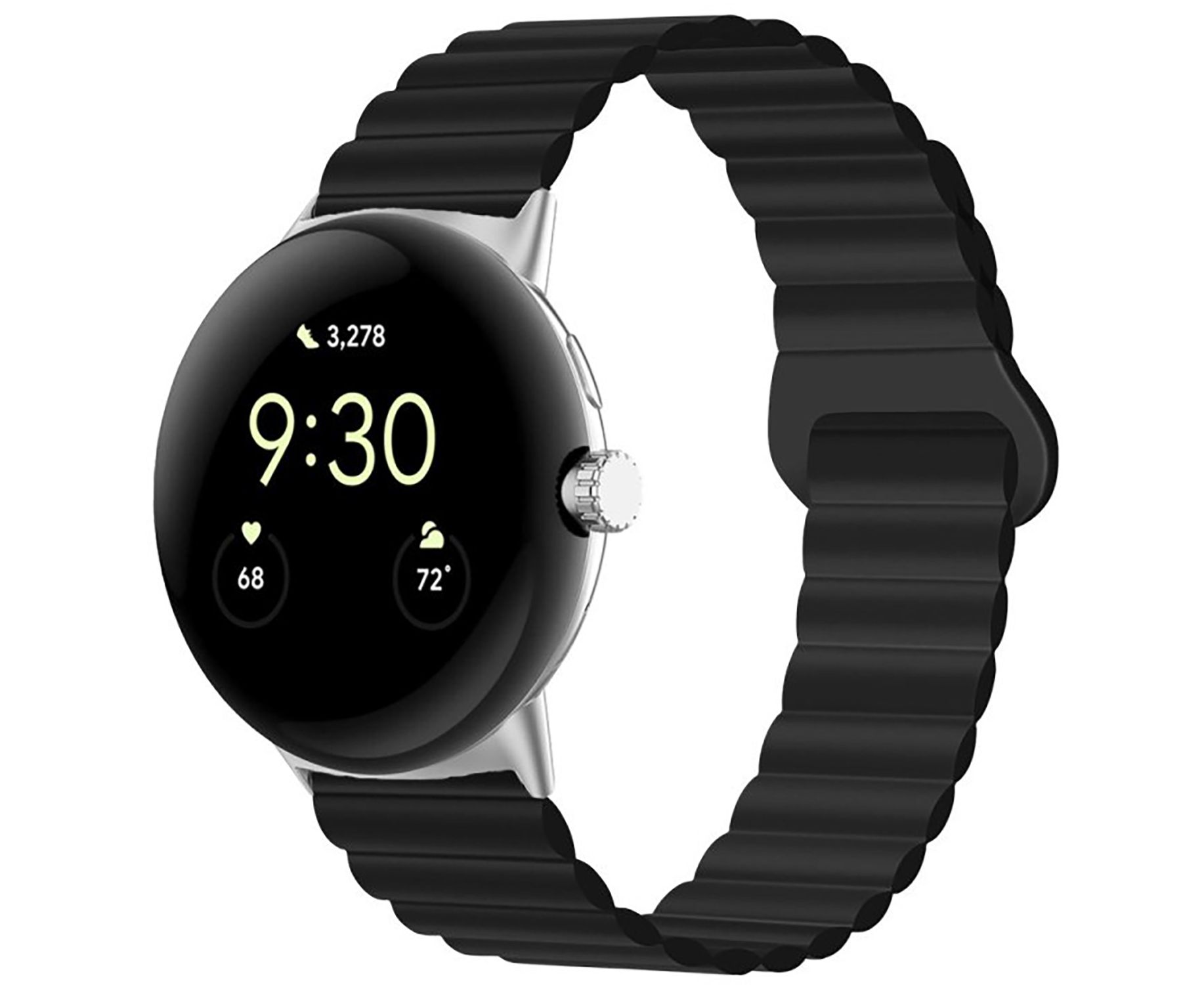 Браслет оснащен удобной магнитной застежкой, которая обеспечивает надежное крепление вашего гаджета. Просто приложите ремешок, и он автоматически закрепится в нужном положении.