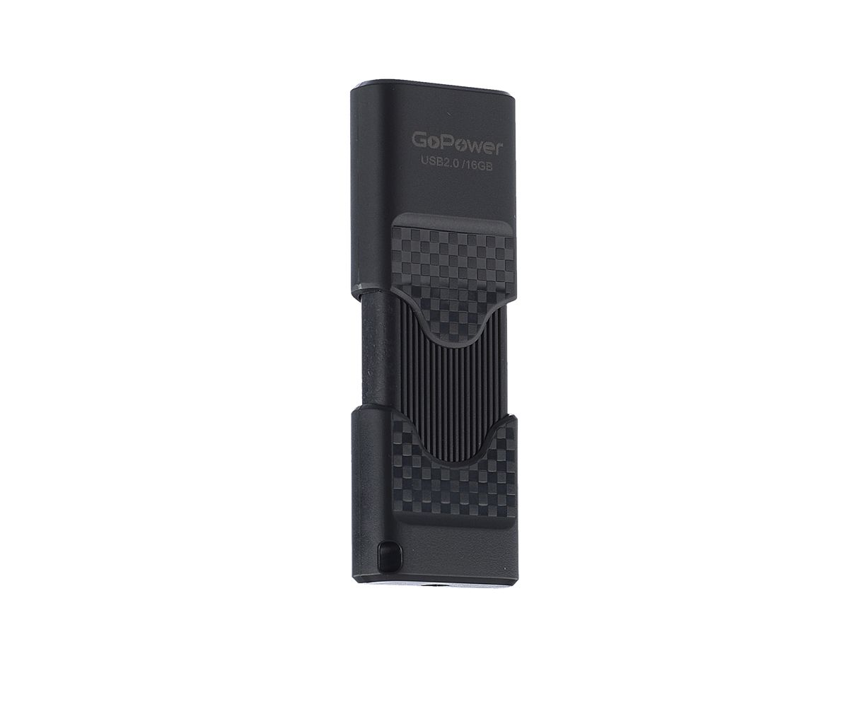 USB-флешка GoPower Slider 00-00025963 16GB USB2.0 пластик черный матовый (1/50/1000)