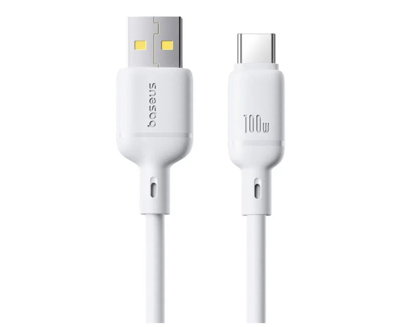 USB-кабель Baseus Silky Series P1037703213-00, Type-C, 100W, ткань, 1.0 м, круглый, белый, фирменная упаковка