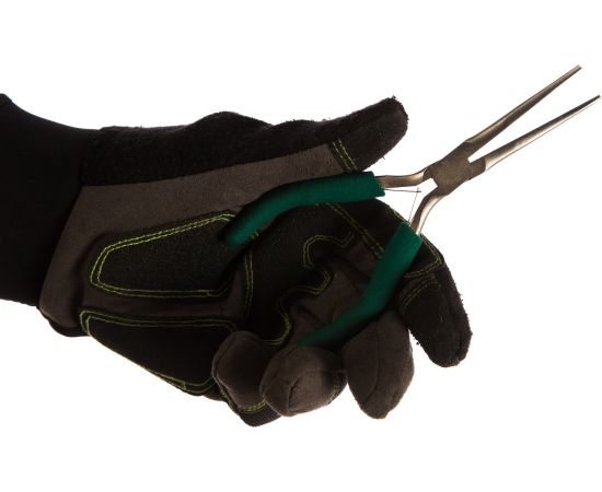 Инструмент прост в использовании за счет плоской возвратной пружины. Длинные губки упрощают работу с мелкими предметами.