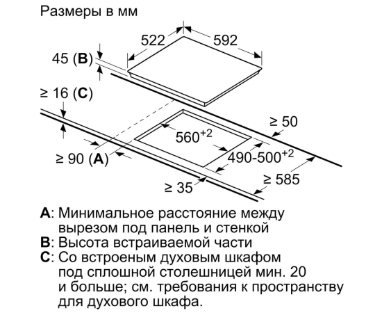 Размеры ниши для встраивания панели, мм