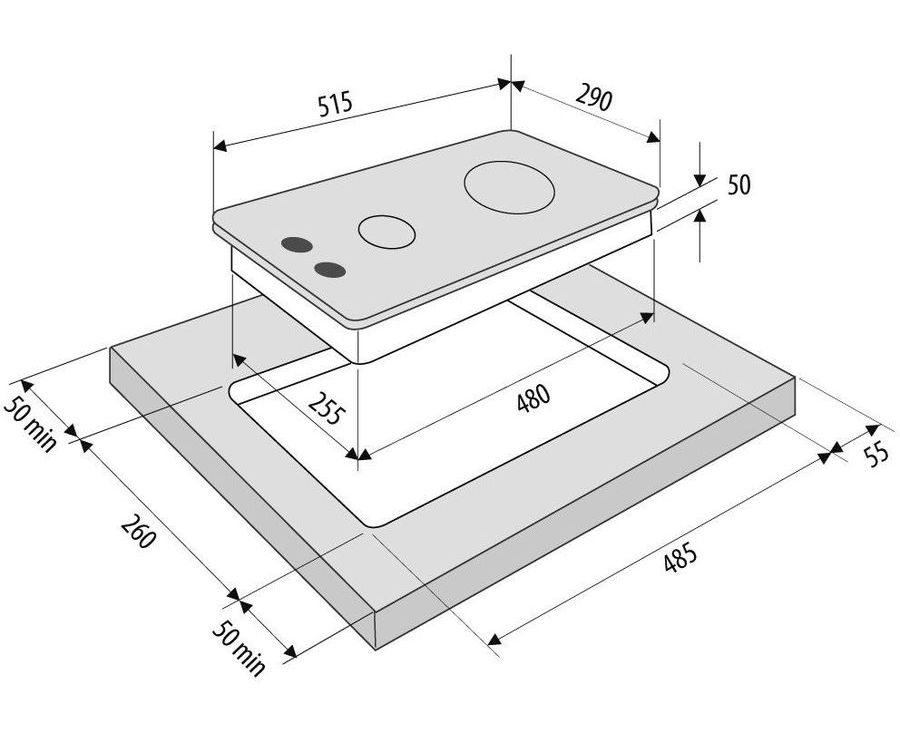Размеры для встраивания (ШхГ) 255x480 мм
