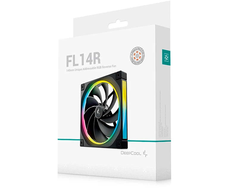 Вентилятор DEEPCOOL FL14R 140x140x25мм Reverse (PWM, ARGB, черный, 500-1700об/мин) Color Box