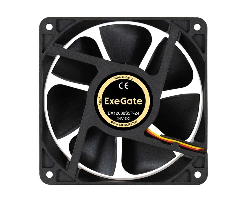 Вентилятор Exegate 24В DC ExeGate EX12038S3P-24 EX297096RUS (120x120x38 мм, Sleeve bearing (подшипник скольжения), 3pin, 3000RMP, 46,1dBA)