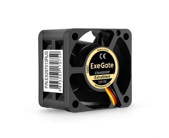 Вентилятор ExeGate ExtraSilent ES04020S3P EX297013RUS 12В DC (40x40x20 мм, Sleeve bearing (подшипник скольжения), 3pin, 6300RPM, 28dBA)