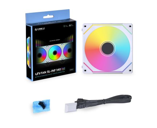 Вентилятор Lian Li Uni Fan SL-INF 140 White /UF-SLIN140-1W/ G99.14SLIN1W.R0/ 140x140x25мм (PWM, ARGB, 200-1600 об/мин, 28dBa)