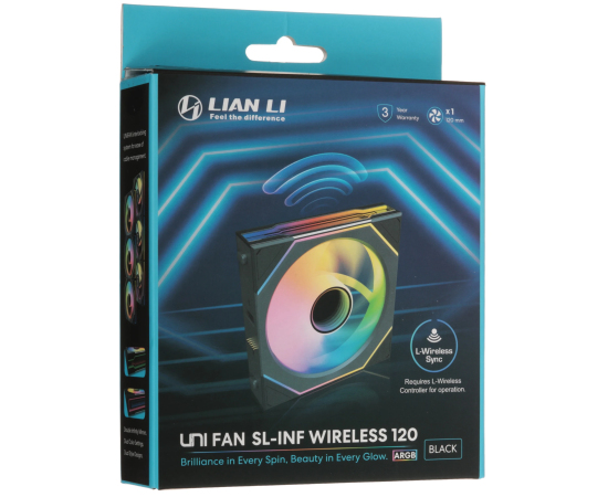 Вентилятор Lian Li Uni Fan SL-INF Wireless 120 (G99.12SLIN1W1B.R0) / 12SLIN1W1B Black / 120x122,1x25мм (PWM, ARGB, 2300 об/мин (Max.), 29,2dBa)
