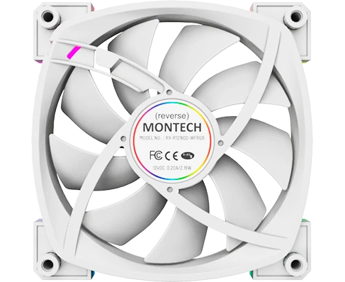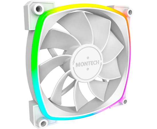 Вентилятор Montech RX120 PWM, Reverse White (RX120W) / 120mm, 4pin PWM, 3pin ARGB, 800-1600RPM, 59.0CFM, 27.0dBA, Rifle bearing