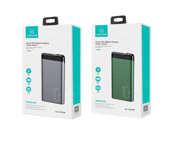 Внешний АКБ USAMS US-CD148 (10000 mAh), Alloy Digital Display, темно-зеленый (10KCD14802)