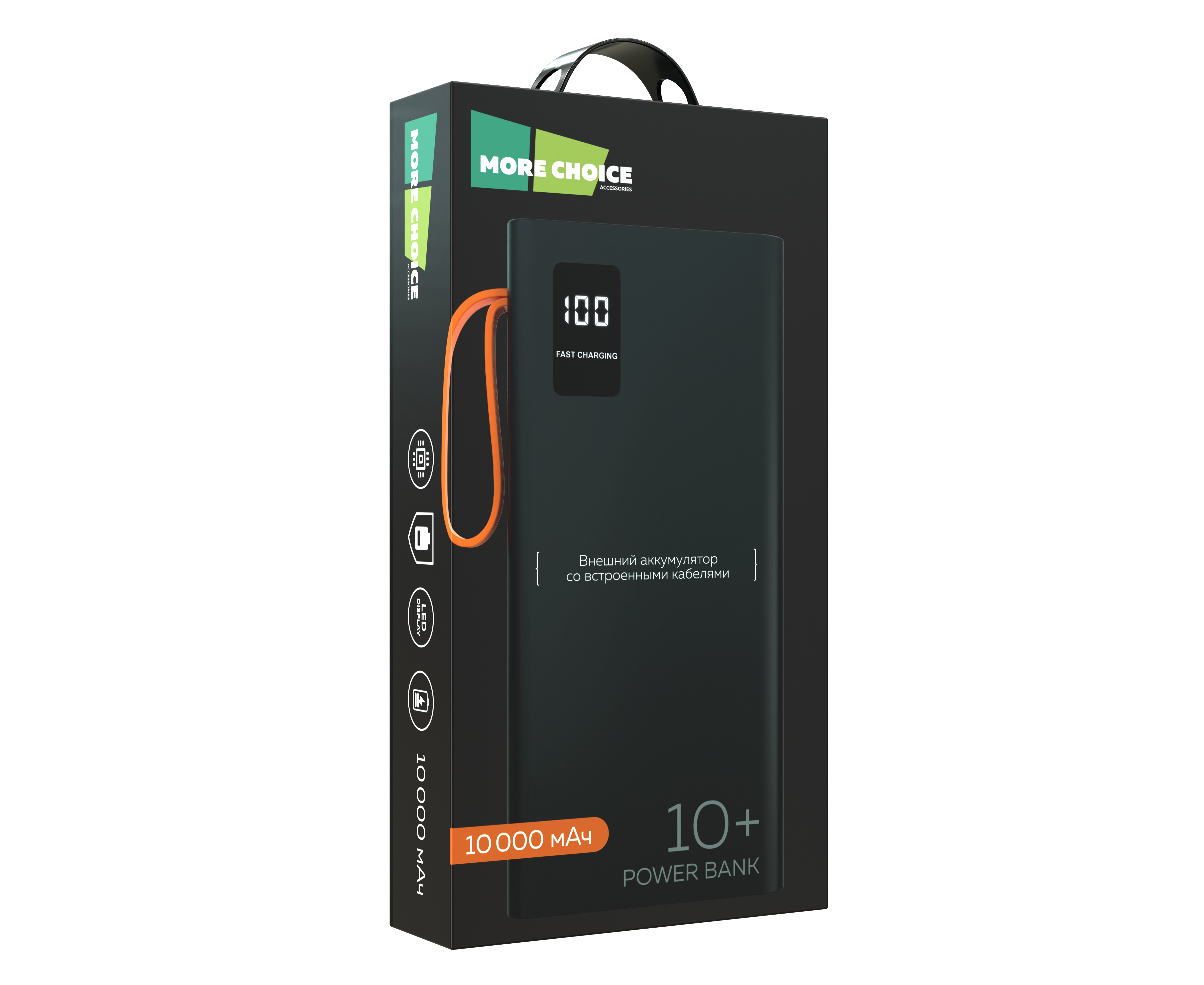 Внешний аккумулятор 10000mAh 2USB 2.1A More choice PB22-10 с кабелем (Black)