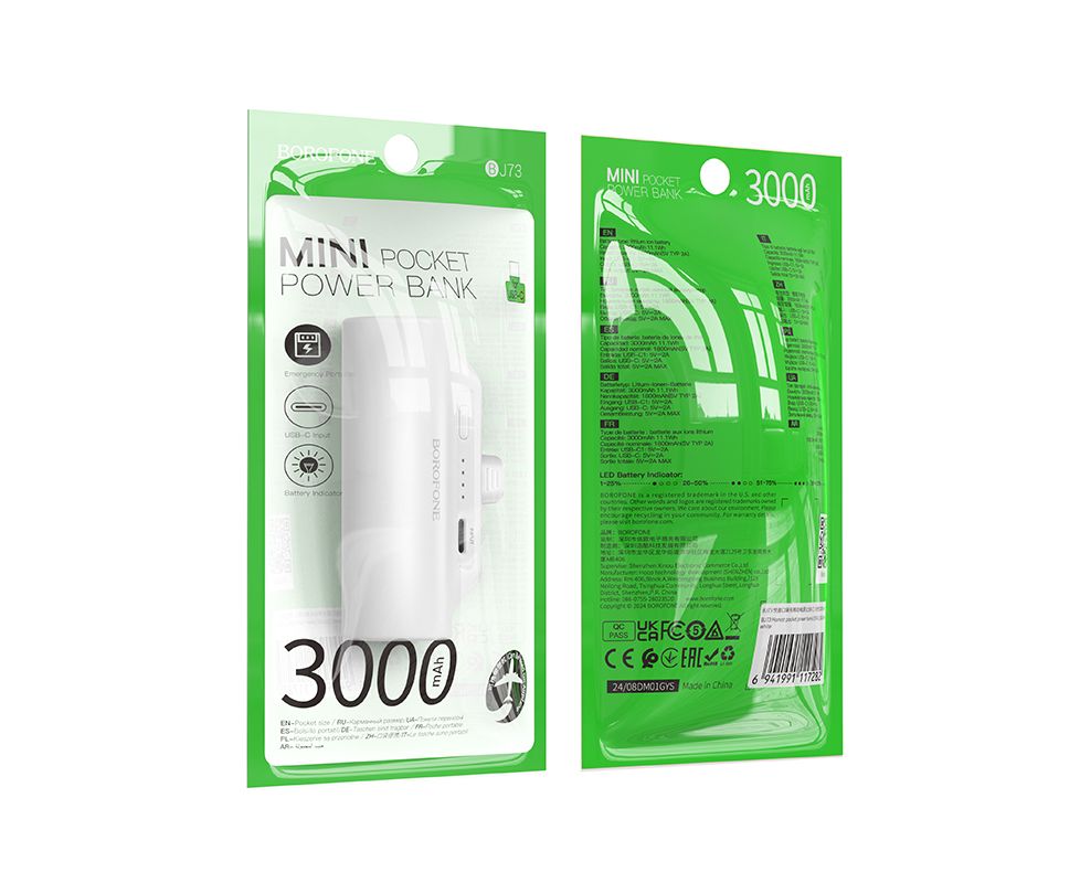 Внешний аккумулятор 3000mAh Type-C 2.0A с LED-индикатором Borofone BJ73 (Type-C) (White)