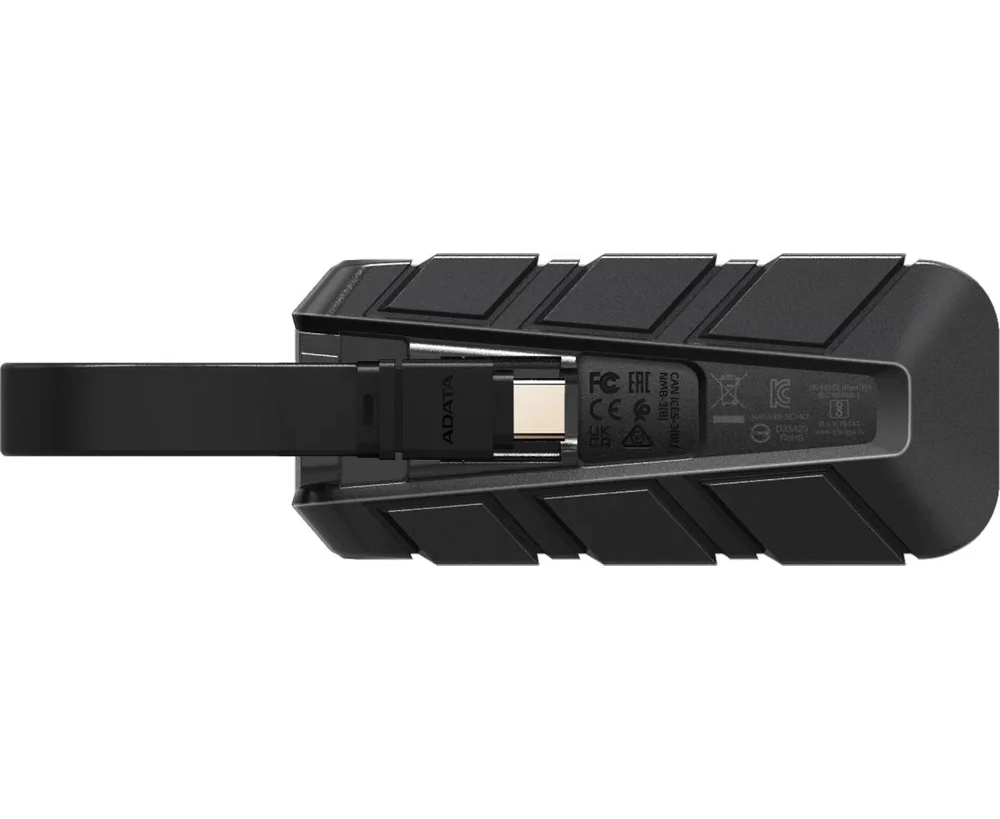 встроенный кабель USB Type-C, накопитель обладает устойчивостью к ударным нагрузкам при падении с высоты до 1.22 м (стандарт MIL-STD-810G 516.6)