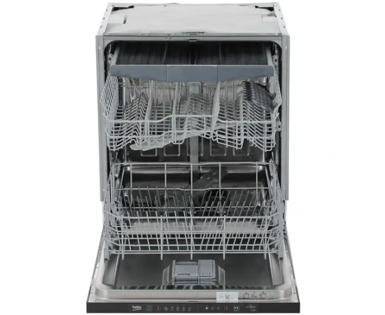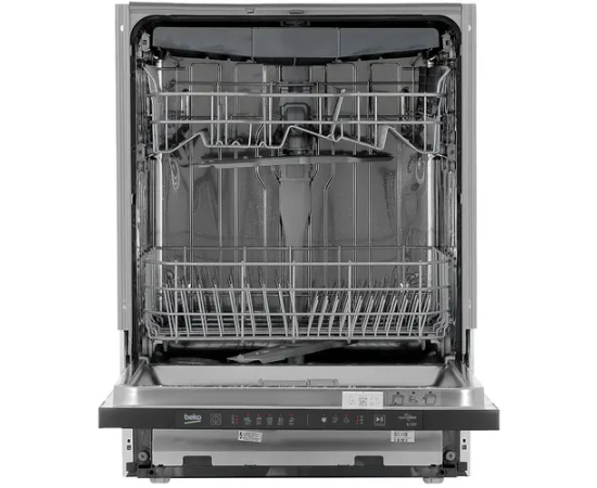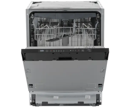 Встраиваемая посудомоечная машина Beko BDIN15560 с 3 корзинами, отдельными полками для чашек и складными держателями для тарелок вмещает 15 комплектов. Верхний разбрызгиватель улучшает качество мойки при полной загрузке камеры. ПММ оповещает об окончании программы звуковым сигналом и лучом на полу. Автооткрывание двери для сушки посуды сокращает потребление энергии.