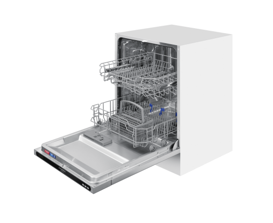 MAUNFELD MLP6022A01— полноразмерная встраиваемая посудомоечная машина, которая избавит вас от необходимости мыть посуду вручную . Вместимость — до 12 комплектов посуды. За раз можно помыть сразу много посуды — это оценят большие семьи и те, кто любит готовить или часто принимает гостей. В машине максимально эффективно организовано внутреннее пространство. Есть удобная корзина для столовых приборов и мелкой утвари. Верхняя корзина — с изменяемой высотой установки, чтобы можно было мыть посуду разного размера и объёмов. В верхней корзине есть складные держатели для бокалов — дополнительное важное удобство. Предусмотрены несколько программ мытья для посуды разной степени загрязнения. Посудомоечная машина MAUNFELD MLP6022A01— помоет посуду без вашего участия, освобождая время для более приятных занятий.