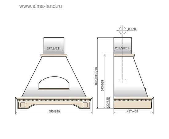 Ширина встраивания вытяжки, см: 60