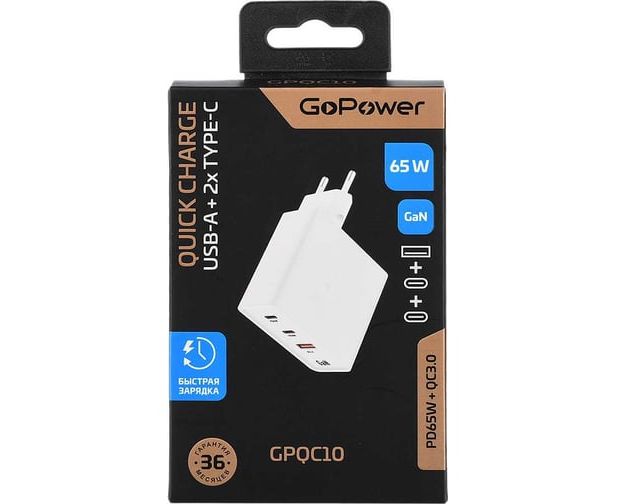 Зарядное устройство нового поколения GoPower GPQC10 создано для максимально быстрой и безопасной зарядки ваших устройств - телефона, планшета, наушников, повербанков и многих других гаджетов. Инновационная технология GaN на базе нитрида галлия позволяет быстро зарядить любые совместимые гаджеты, включая аудио и фото технику.