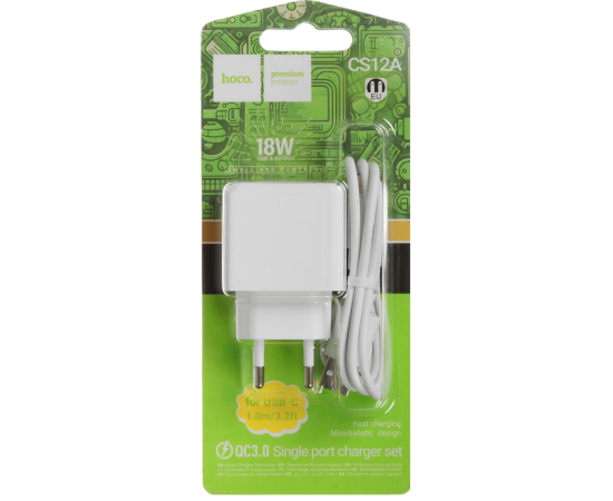 Зарядное устройство HOCO CS12A Ocean 1USB 18Вт, QC, FCP, AFC, кабель Type-C белый