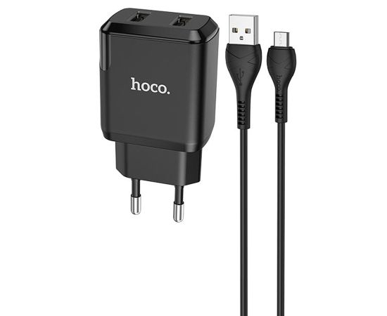 Сетевое зарядное устройство HOCO N7 Speedy 2xUSB с Кабелем USB - Micro, 2.1A, 10W, черный
