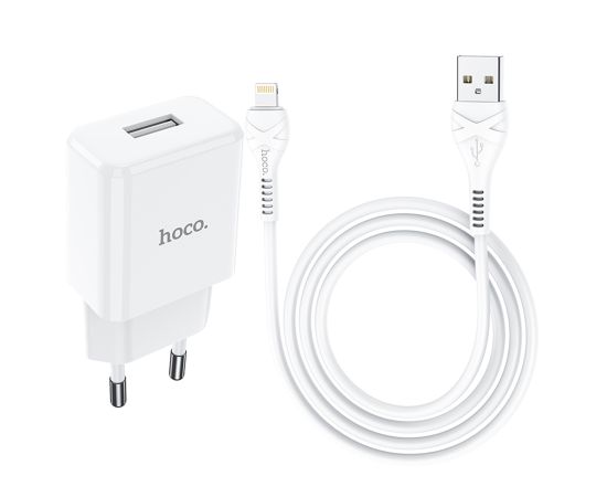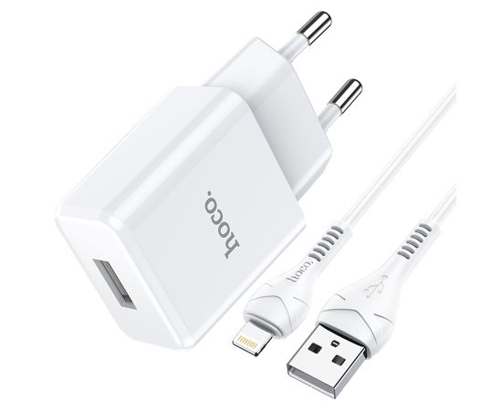 Сетевое зарядное устройство HOCO N9 Especial 1xUSB с Кабелем USB - Lightning, 2.1A, 10W, белый