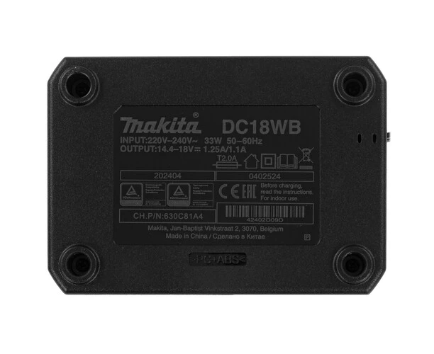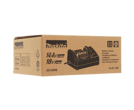 Зарядное устройство Makita DC18WB подходит для питания аккумуляторов для инструментов с креплением в виде слайдера. ЗУ допускает зарядку в течение часа. Модель с предельным напряжением 18 В подходит для питания от сети 220 В.