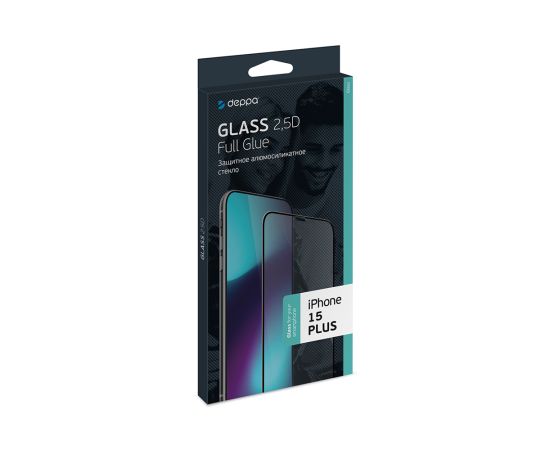 Защитное стекло 2,5D Classic Full Glue для Apple iPhone 15 PLUS, 0.3 мм, черная рамка, прозрачное, Deppa, 62951