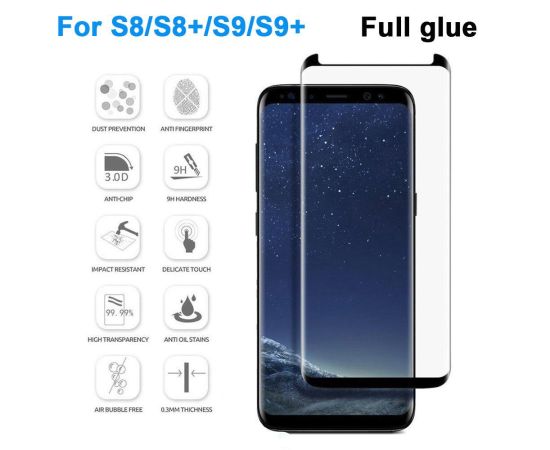 Защитное стекло для Samsung S8 Plus/S9 Plus, Full Glue 3D, с вырезом под камеру и датчики, прозрачный+черная рамка