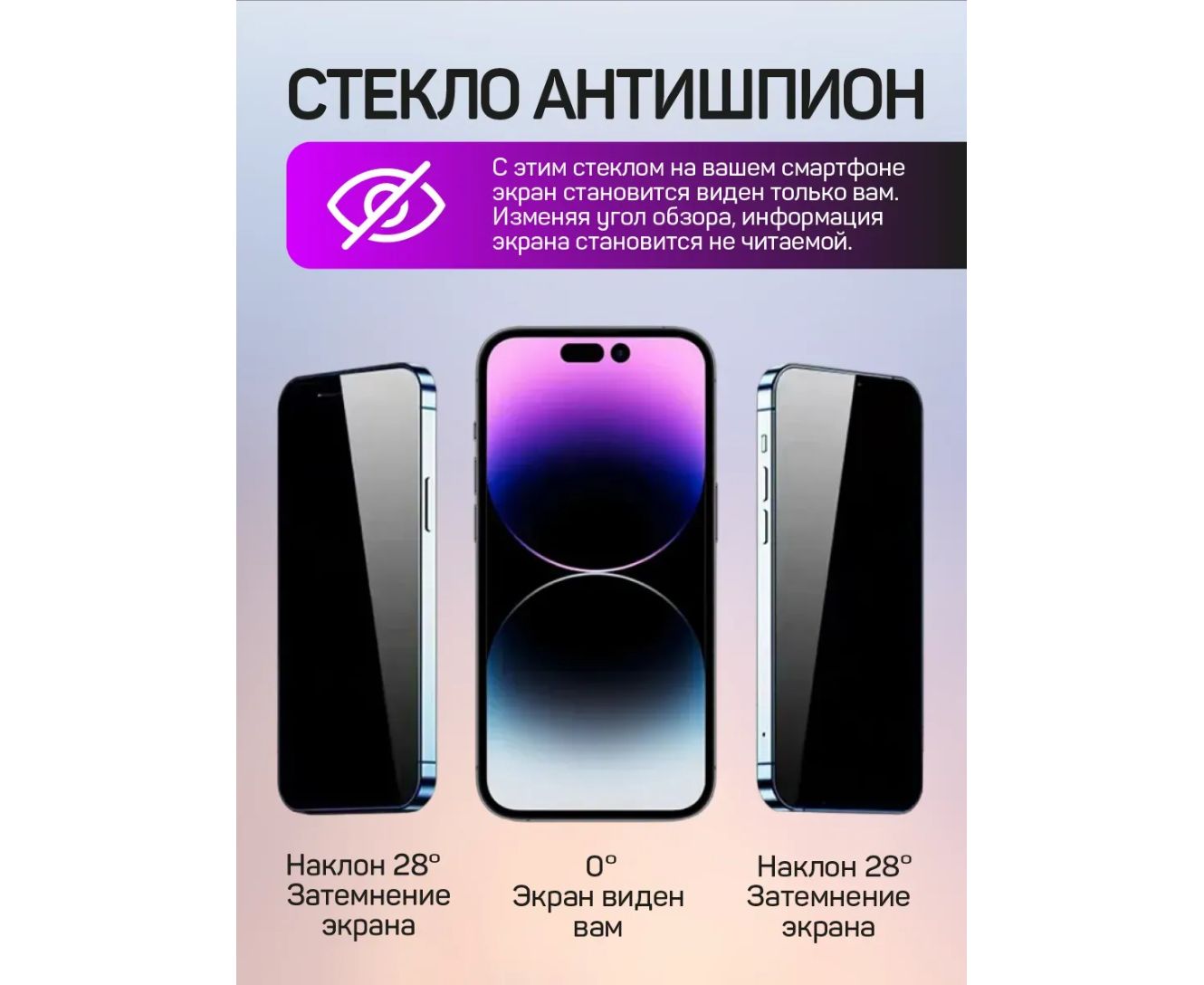 Защитное стекло "Антишпион" тех пак Apple iPhone 15