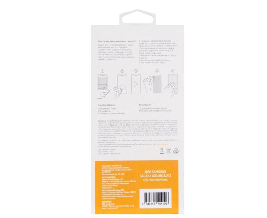 Защитное стекло Digma (DGG2SAA02A) для Samsung Galaxy A02/A02s/A12 2.5D 1шт.